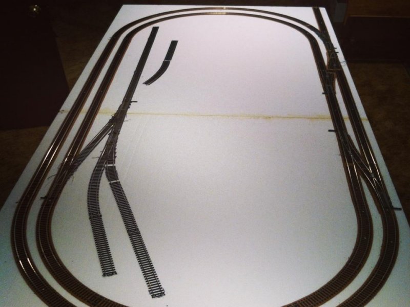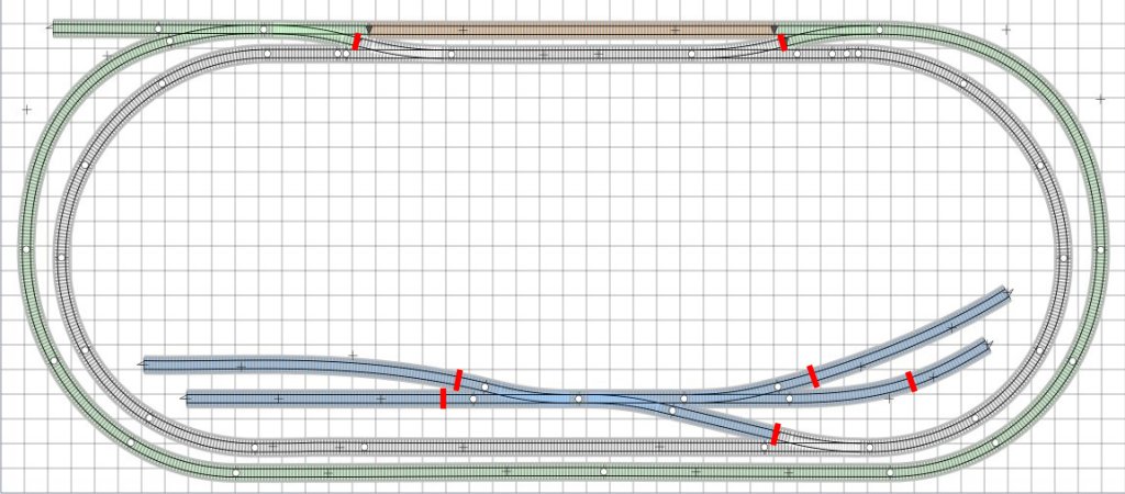 loops for the fun of watching trains go by and a yard area to provide some shunting interest. The overall size is 88" x 40". This size was dictated by my desire to have the layout fit in my vehicle, and also so that it can stand almost vertically against a wall in my basement. The drawing above is not quite to that size as I shortened the length of the board slightly when I started construction, but it's close. I wanted the whole layout to be light weight. The baseboard is 4" thick white expanded polystyrene foam. This is rigid and will be edged with 3/16" (4mm) plywood. My design has a spine of extruded polystyrene hills which adds to the rigidity as well as creating a scenic break. The upper half of the plan (above) is Monsal Dale and the lower half represents Millers Dale. Both are places in the Peak District of Derbyshire, England. The Monsal Dale station is a simplification of the real station. Millers Dale, on the other hand, is a complete fantasy compared to the large complex station that it really was. The layout is wired for DC (not DCC). I prefer the simplicity of DC and believe that it's easier to achieve totally reliable running with this system. I happen to dislike simulated locomotive sound, so that leaves little to entice me to attempt DCC! On the plan the red bars represent where the electrical breaks are located. These allow me to have several engines on the layout at once, including the outer and inner loops being controlled separately (using two controllers), or the outer loop running while shunting with two engines in the yard. I'll go into the details on a separate page of the switch panel, which allows all of this to happen. |